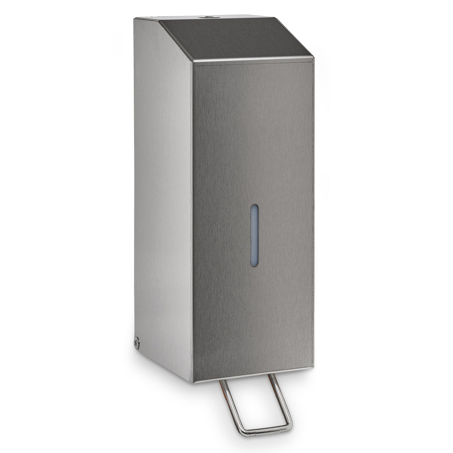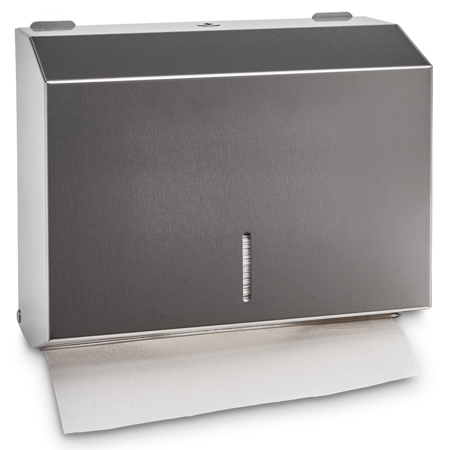 Soap and towel dispenser made of brushed stainless steel with viewing window and in a lockable design.